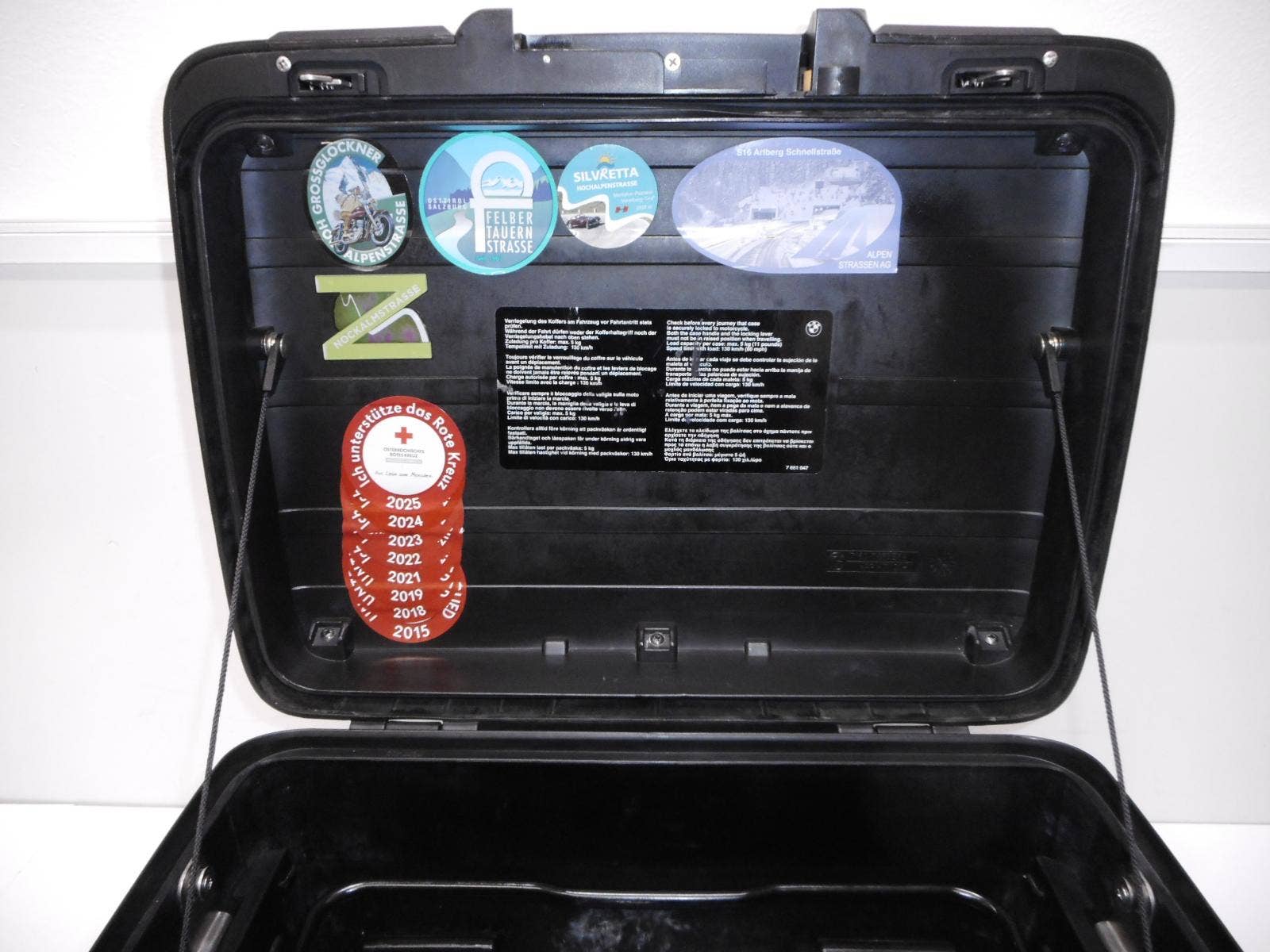 Roztahování i stahování Vario je v pořádku, stejně tak jako zamykání a upínání kufru. Pořizovací cena kufru s opěrkou je cca 14.000, kč. (R1200GSGELB05RUD)