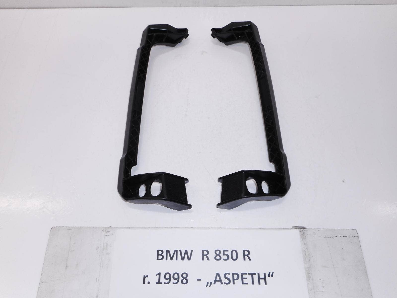 Cena je za kus. Při použití na modely GS je potřeba na jedné straně ještě přidat plastový mezikus (kostku s dvěma dírami pro šrouby), který oddálí nosič od rámu. Díl pochází z rakouského motocyklu BMW R 850R, rok výroby 1998 ("ASPETH"), který měl najeto 61.000 km. Před použitím na jiný model, ověřte před objednáním kompatibilitu. Více dílů na www.automotocerveny.cz