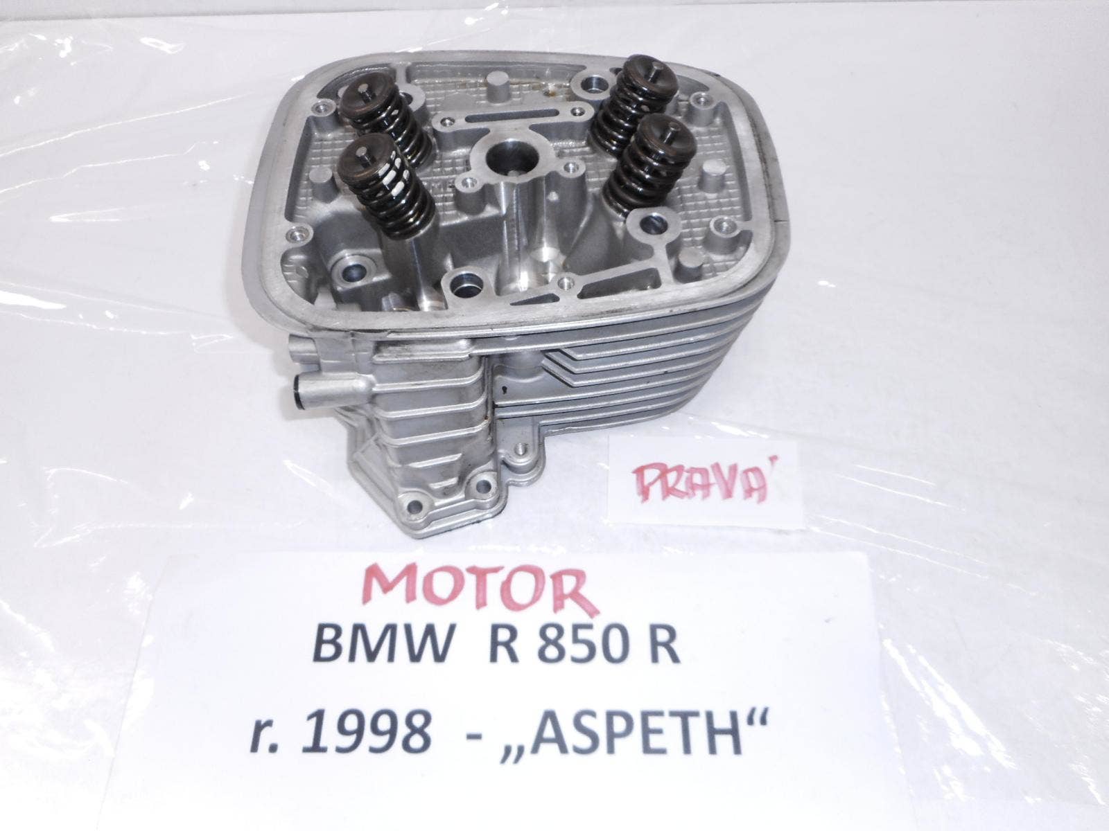 Cena je za hlavu. Sací ventil s pružinou a zámkem je za 450,– Kč a výfukový s pružinou a zámkem stojí 690,– Kč. Díl pochází z motocyklu BMW R 850 R, typ motoru 852EA, r.v. 1998 (Aspeth), který měl najeto 61.117 km. Motor byl nepoškozený, šel tiše a měkce, bez cizích zvuků. Možno zaslat video s chodem motoru. Více dílů na www.automotocerveny.cz