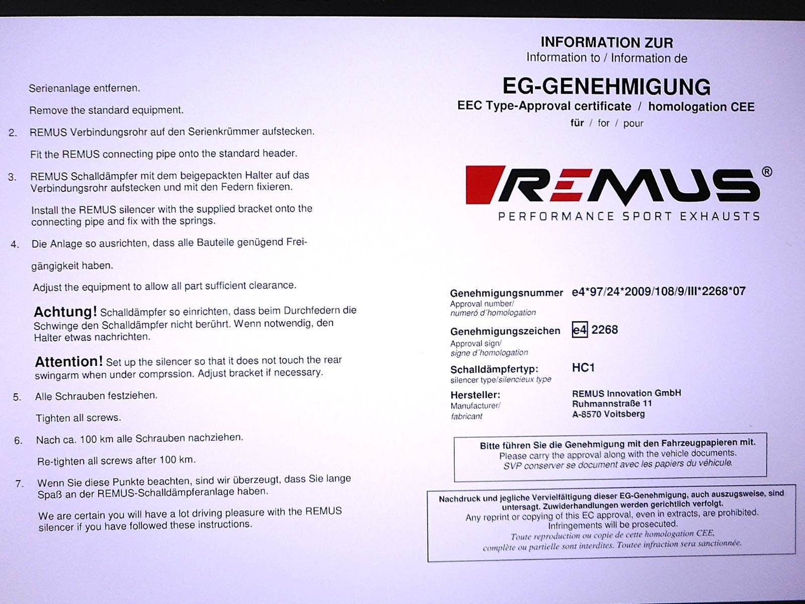 Homologovaná koncovka Remus HC1 + svod (nerez - karbon). Pro modely R 1200 GS je možné, že musí být jiný svod. Pořizovací cena 23.600, kč. Díl pochází z motocyklu BMW R 1200 RT (Rakousko), r. 2009, typ K26. Při použití na jiný model, ověřte před objednáním kompatibilitu. Více dílů na www.automotocerveny.cz