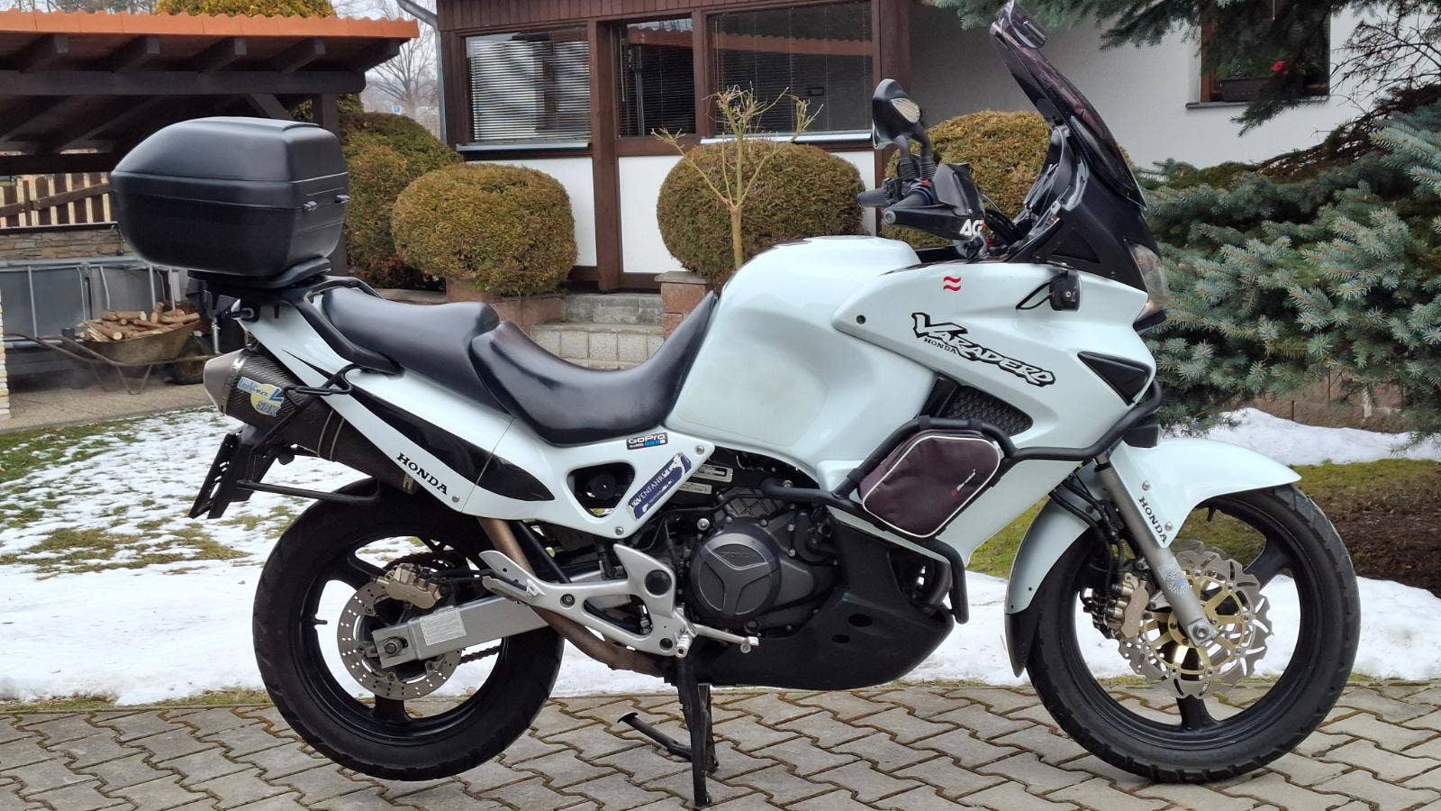 Motocykl je dovezený z Rakouska (majitel ing., ročník 1968). I přes vyšší nájezd je motocykl po technické a motorické stránce v pořádku. V roce 2025 byla při běžném servisu vyměněna i kompletní nová spojka. Předtím nové pneu, kotouče a brzdové obložení. Cena je za motocykl bez nosiče bočních kufrů. Ten lze k motocyklu dodat s originál Honda kufry za příplatek. Výbava: laděné karbon-titanové výfuky Leo Vince, padací rámy, přídavná světla, boční kapsy na rámech, doplňkové stupačky a řadící páka, doplňková zrcátka s integrovanými blikači a představci, kouřové plexi MRA s deflektorem, Acerbis blastry, teploměr, ukazatel zařazené rychlosti, nosič horního kufru + kufr, imobilizér, držák navigace, zadní LED blikače, LED zadní světlo aj. Rakouský TP s globální homologací a odhláškami na bezproblémové přihlášení v nejlevnější variantě. Pravá boční kapotáž má ulomený úchyt viz. video. K motocyklu jsou faktury za servis a protokoly z rakouské STK. Bez riziková koupě, protože prodejem dílů lze získat násobně víc než motocykl stojí.